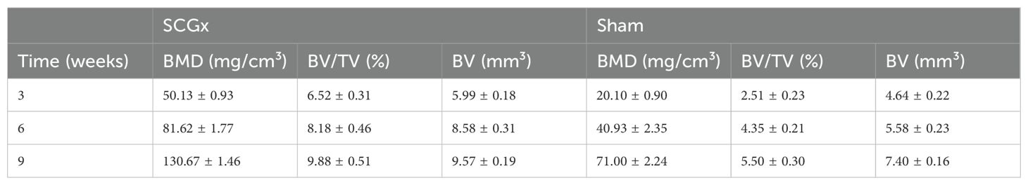 TABLE 2: The bone histomorphometric parameters after SCGx.